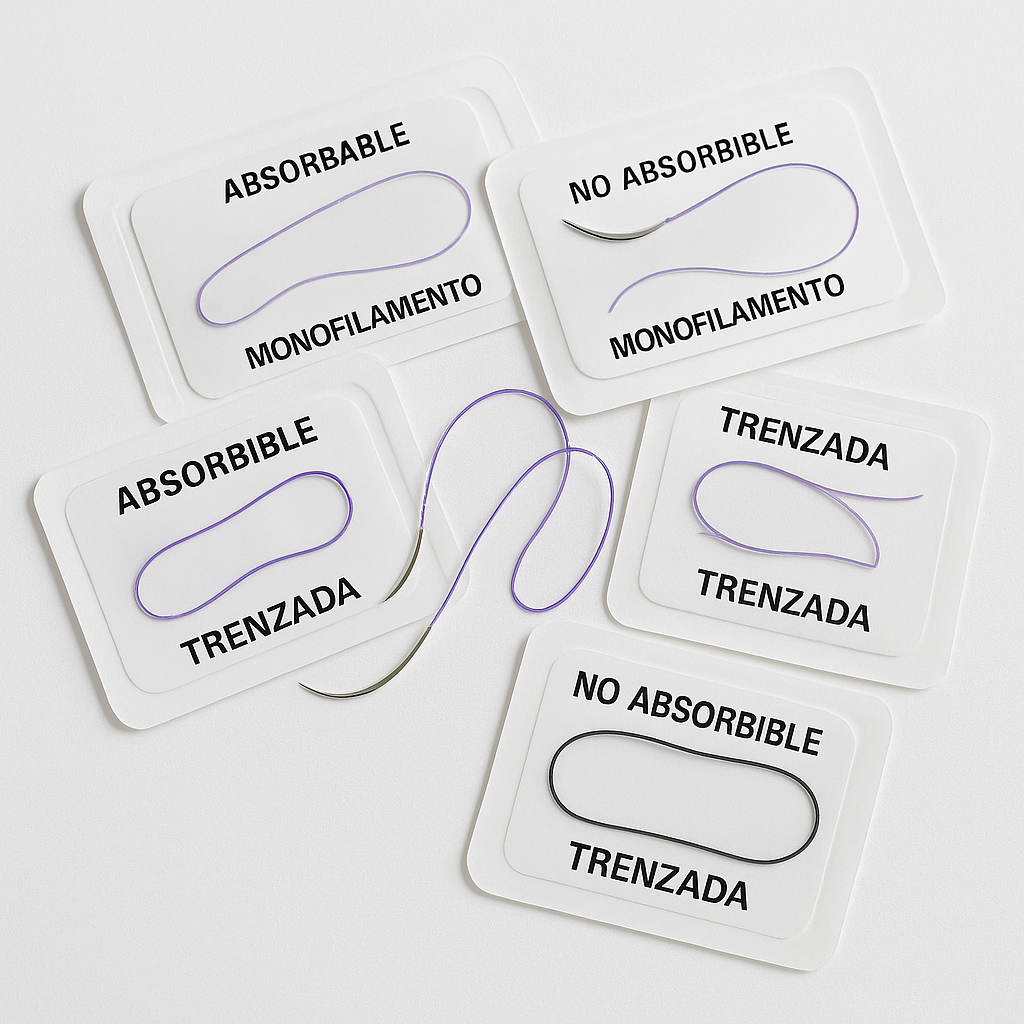 - Suturas quirúrgicas (absorbibles y no absorbibles)